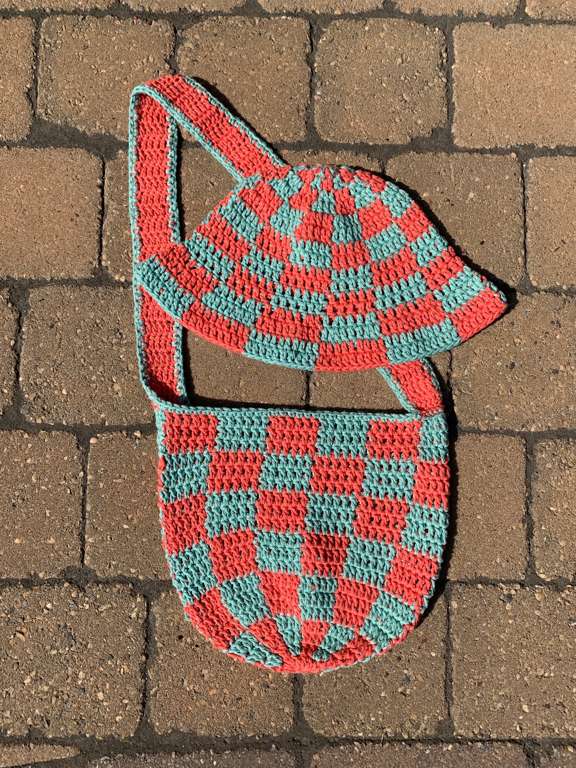 Over the Shoulder Bag - Checkered Orange/Turquoise